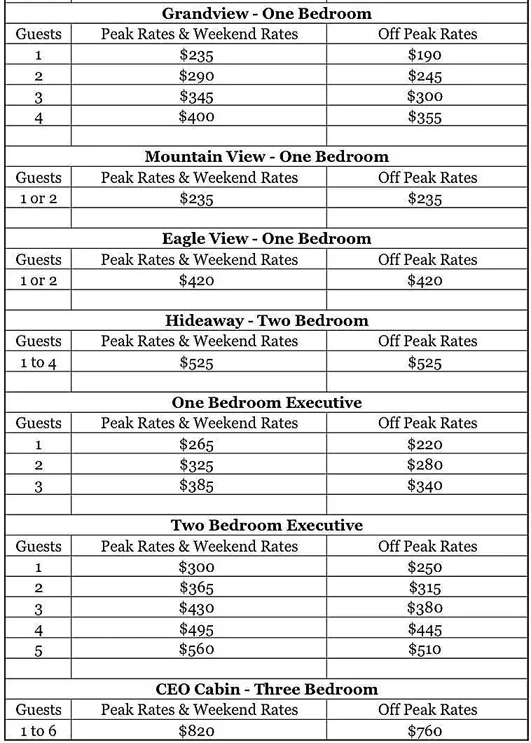 Cabin Rentals & Rates