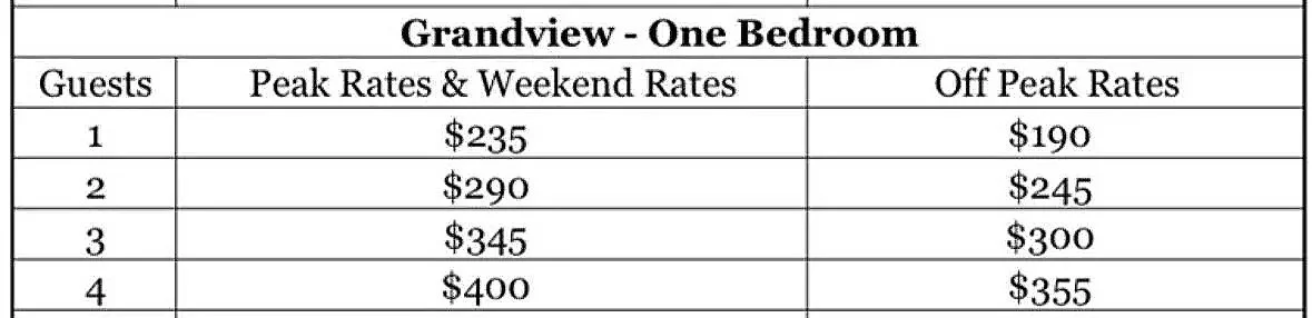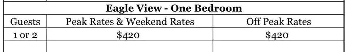 Peak Rates are everyday in April, May, June, and every weekend(Friday & Saturday) in July - October.
